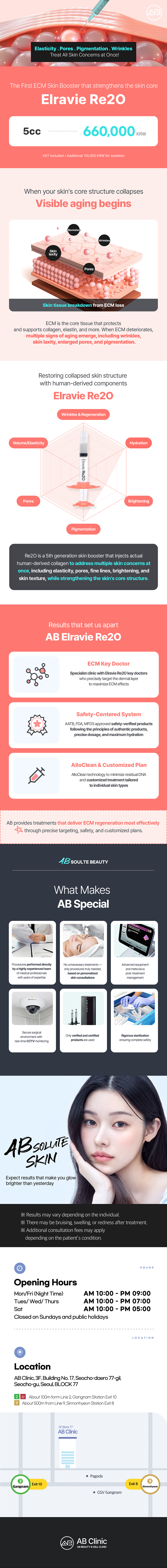 Elravie Re2O is the first ECM skin booster designed to rebuild your skin core, improving elasticity, pores, pigmentation, and wrinkles—all in one treatment.