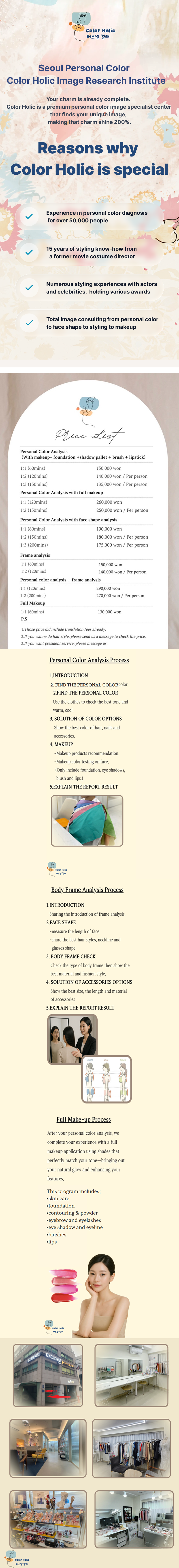 Color Holic5.0(500+)Personal Color Analysis150,000 KRWKey Points at a Glance ๐Personal Color AnalysisDetail pageReviewView detailReviewNewestLeave a review and share your experience with others.No reviews available.Color HolicCLOSEDGangnam-gu Office Station, SeoulPrivate3F, 6, Seolleung-ro 122-gil, Gangnam-gu, Seoulcopy์์ธ ๊ฐ๋จ๊ตฌ ์ ๋ฆ๋ก122๊ธธ 6 (์ผ์ฑ๋)copy