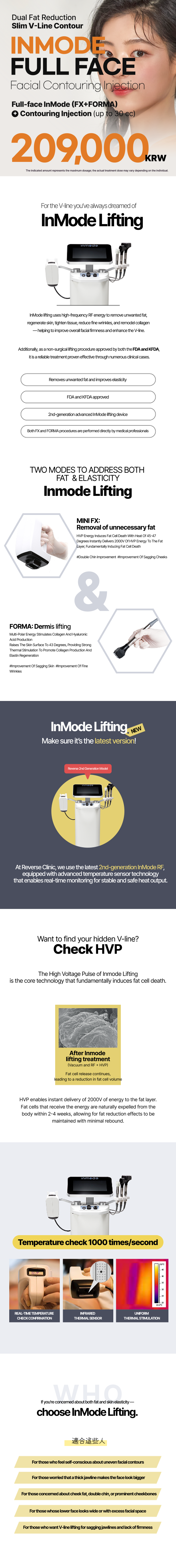 A 3D facial sculpting plan: using InMode RF to help firm the skin, combined with contour-focused fat reduction management, to improve the appearance of sagging and fullness and help achieve a naturally lifted, sculpted V-shaped look.
