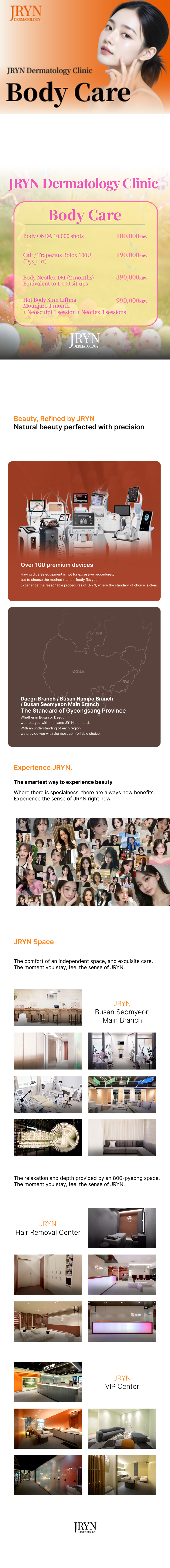 Body ONDA (10,000 shots) Non-invasive microwave treatment that helps reduce localized fat and improve body contour. Calf / Trapezius Botox (100U, Dysport) Relaxes overdeveloped muscles to create a slimmer and softer body line. Body Neoflex (1+1, 2 months) Muscle stimulation program that helps strengthen core muscles and improve body shape. Hot Body Slim Lifting Combination body program designed for fat reduction, muscle toning, and overall body contouring.