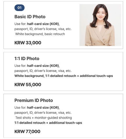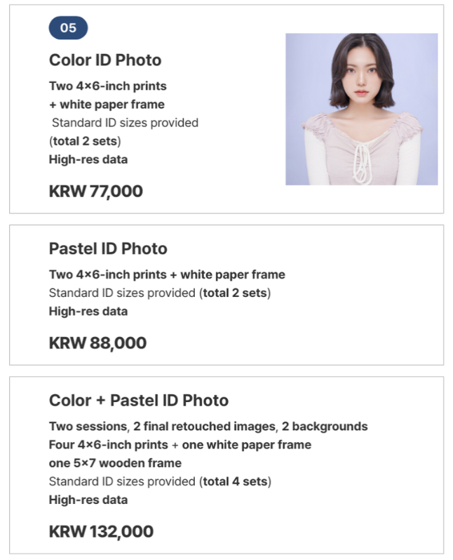 - Foto ID ukuran kecil (standar Korea), paspor, kartu identitas, SIM, visa, dll