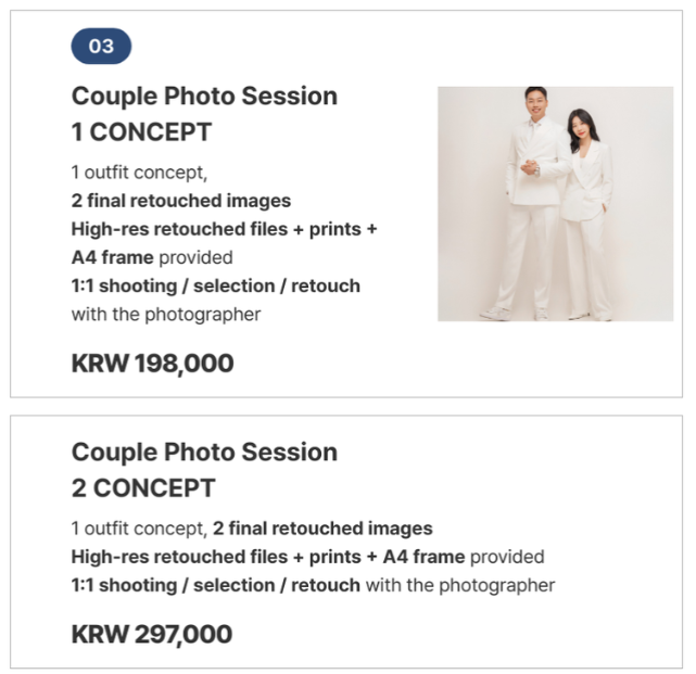 - Pemotretan 2 orang: 110.000 KRW