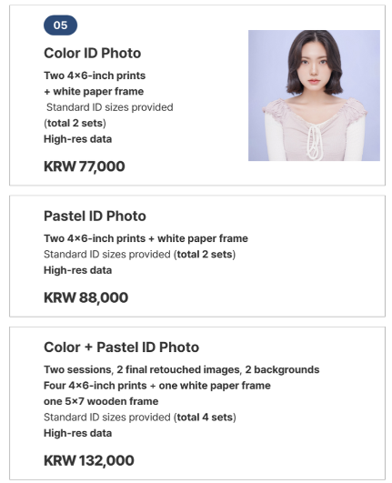 - Foto ID ukuran kecil (standar Korea), paspor, kartu identitas, SIM, visa, dan lainnya