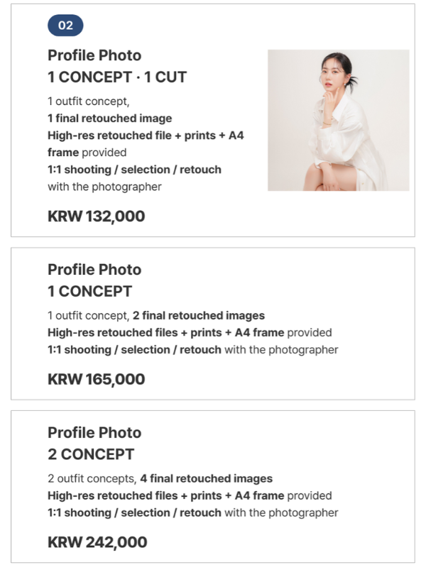 - 5 orang atau lebih: 165,000 KRW + (jumlah orang × 22,000)