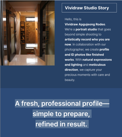 Melalui kolaborasi intens bersama fotografer, kami menyempurnakan foto profil personal dan foto identitas dengan kualitas setara karya seni.