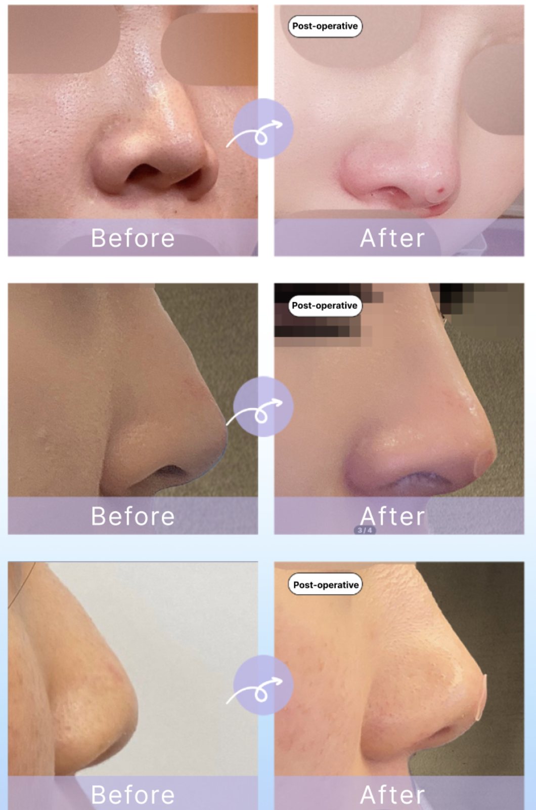 - Lifting ujung hidung 3 tahap untuk hasil tinggi dan elegan.