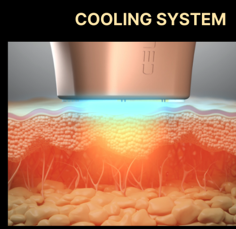 - Sistem pendinginan berdaya tinggi yang mendinginkan epidermis sekaligus fokus menghasilkan panas di dermis, mengurangi nyeri dan memaksimalkan efek rekonstruksi kolagen