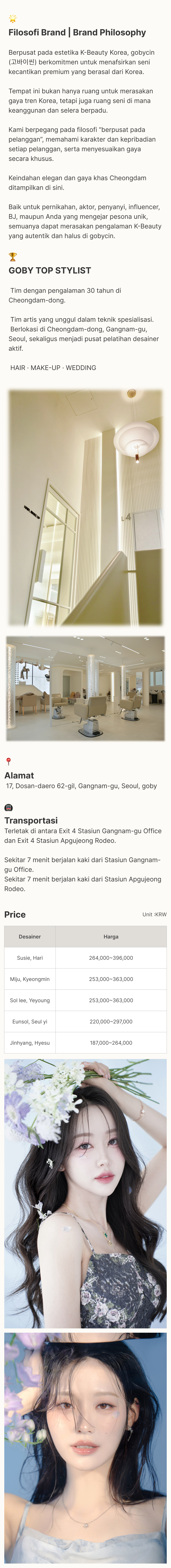 Penataan rambut dan makeup yang mencerminkan gaya khas gobycin. Cocok untuk acara khusus dengan sentuhan detail dan keseimbangan yang diperhitungkan.