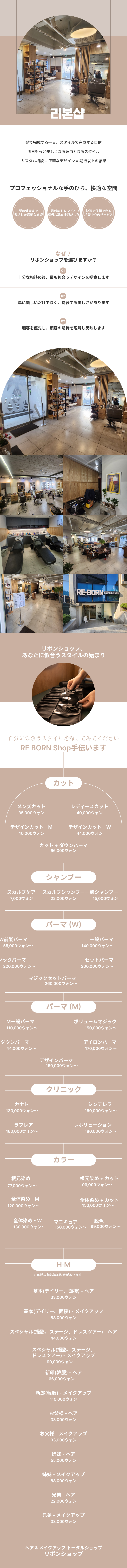 RE-BORN SHOPHair7,000 KRWポイントをひと目でチェック 💖プロフェッショナルな手のひら、快適な空間 カスタム相談 + 正確なデザイン = 期待以上の結果#カット&スタイリング#オーダーメイドヘアスタイル#カラーが上手な美容室Detail pageReviewView detail口コミ新着順口コミを投稿して、体験をシェアしましょう!レビューがありません。RE-BORN SHOPCLOSEDソウル特別市 江南区 オンジュロ 551 1階住所コピー서울 강남구 언주로 551 (역삼동)住所コピー