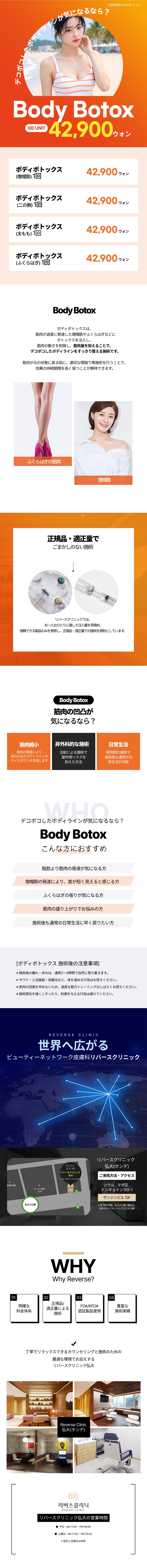 ボディボトックスは、 筋肉が過度に発達した僧帽筋やふくらはぎなどに ボトックスを注入し、 筋肉の動きを制限し、筋肉量を抑えることで、 デコボコしたボディラインをすっきり整える施術です。