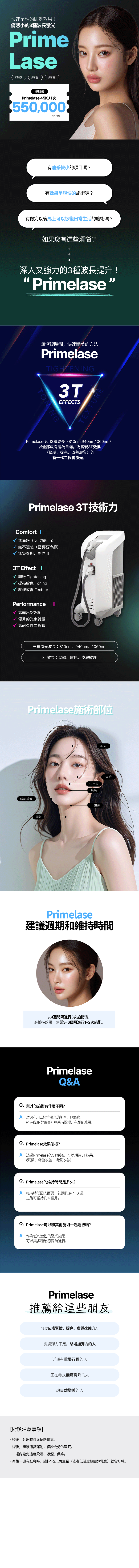 以高能雷射熱效應啟動膠原新生, 依據膚質與彈性需求調整能量強度, 改善鬆弛、下垂與膚質粗糙, 重塑緊緻輪廓,讓臉部線條更立體、更年輕。