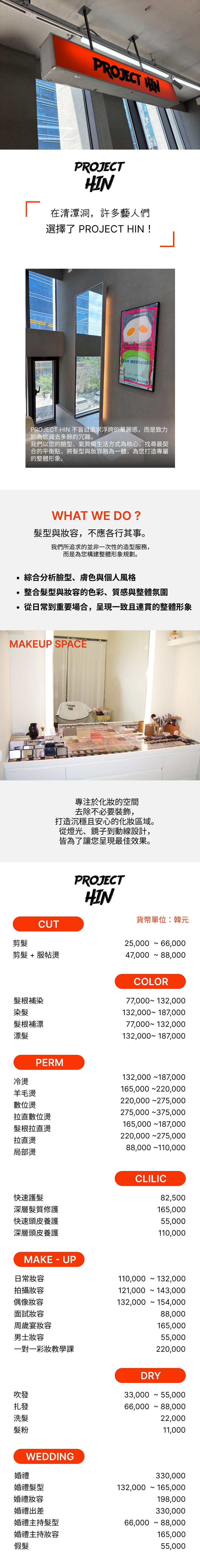PROJECT HIN5.0(10+)Hair&Make-up25,000 KRW重點速覽 💖綜合分析臉型、膚色與個人風格 整合髮型與妝容的色彩、質感與整體氛圍 從日常到重要場合,呈現一致且連貫的整體形象#剪髮及造型#客製髮型#專業染髮沙龍#新娘髮型#客製妝容Detail pageReviewView detail評價最新發布歡迎留下你的使用體驗,與更多用戶一起分享暫無評價PROJECT HINCLOSED聖水站 首爾市 城東區 聖水二路7街 30號 3樓複製地址서울 성동구 성수이로7길 30 (성수동2가, 빌딩8)複製地址