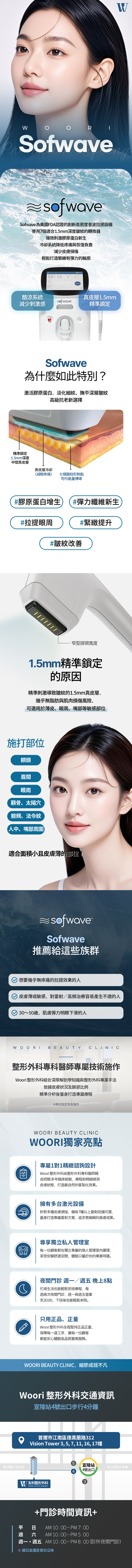 Woori Plastic Surgery Clinic4.5(100+)WOORI Sofwave880,000 KRW重點速覽 💖新型超音波波提拉術,同步改善皮膚彈性與皺紋#皮膚拉提療程Detail pageReviewView detail評價最新發布歡迎留下你的使用體驗,與更多用戶一起分享暫無評價Woori Plastic Surgery ClinicCLOSED首爾市 宣陵站5F, 7F, 16F, 17F, 312 Teheran-ro, Gangnam-gu, Seoul (Yeoksam-dong, Vision Tower)複製地址서울 강남구 테헤란로 312 (역삼동, 비젼타워)複製地址推薦服務WOORI ONDA 超微波215,600KRWWoori Plastic Surgery Clinic4.5(100+)WOORI 美國音波759,000KRWWoori Plastic Surgery Clinic4.5(100+)WOORI 韓版熱瑪吉Oligio275,000KRWWoori Plastic Surgery Clinic4.5(100+)WOORI 埋線拉提44,000KRWWoori Plastic Surgery Clinic4.5(100+)WOORI 鈦提升330,000KRWWoori Plastic Surgery Clinic4.5(100+)