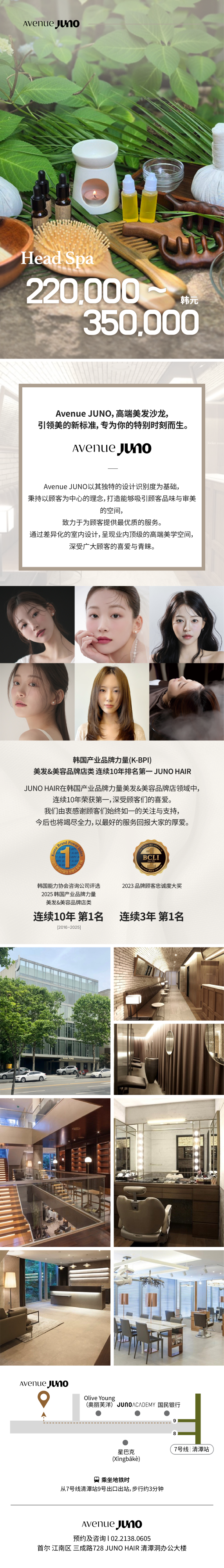 JUNO旗舰店4.4(200+)Head Spa350,000 KRW重点速览 💖头皮护理#剪发和造型#专门做脱色的理发店#造型终结者#K-Beauty发型师#打造人生照Detail pageReviewView detail评价按最新发布欢迎留下你的使用体验,与更多用户一起分享暂无评价。JUNO旗舰店CLOSED私密性首尔市江南区三成路728 Avenue JUNO复制地址서울 강남구 삼성로 728 (청담동, 준오헤어 청담동 사옥)复制地址推荐服务Make up & Head Spa680,000KRWJUNO旗舰店4.4(200+)