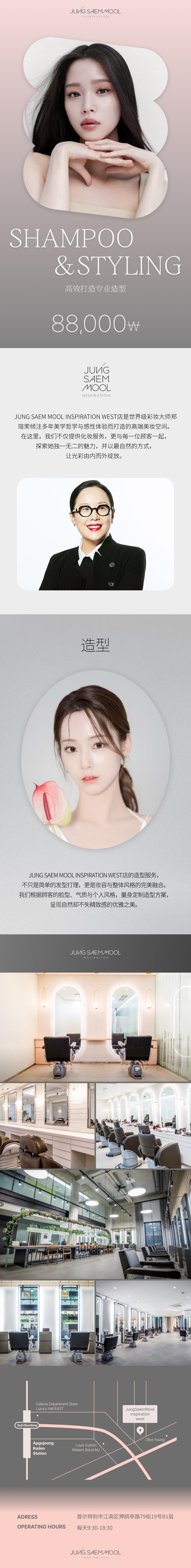 JUNG SAEM MOOL INSPIRATION West4.5(100+)shampoo & styling88,000 KRW重点速览 💖高效打造专业造型#女性装造发型Detail pageReviewView detail评价按最新发布欢迎留下你的使用体验,与更多用户一起分享暂无评价。JUNG SAEM MOOL INSPIRATION WestCLOSED首尔市 新沙站私密性韩国 首尔 江南区 狎鸥亭路79街 19号 B1层复制地址서울 강남구 압구정로79길 19 (청담동, 레인 에비뉴)复制地址